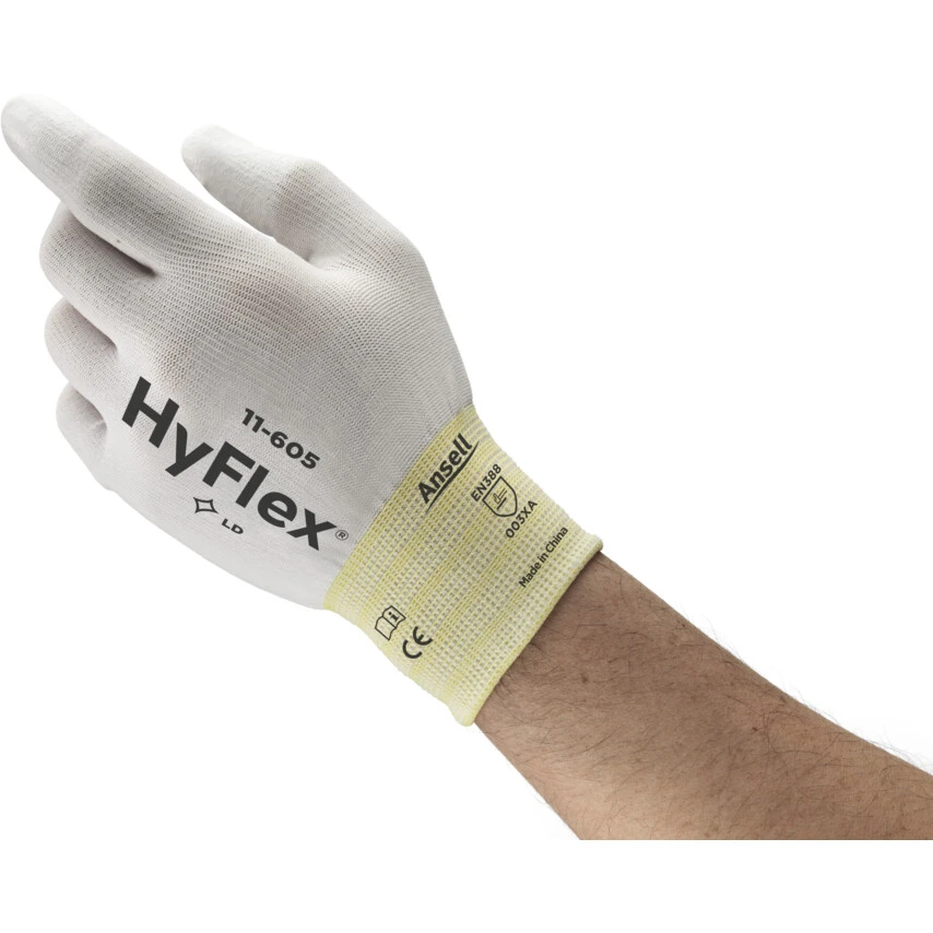 The HyFlex® 11-605 multi-purpose glove is designed for light-duty tasks and delicate applications. Soft and comfortable, they deliver the touch sensitivity and high levels of dexterity needed during assembly and delicate handling applications.