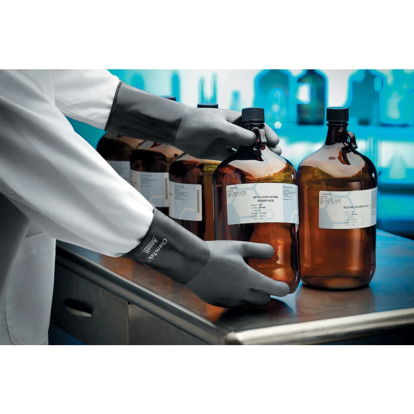 The ChemTek range provides the best resistance to the most aggressive chemicals – without compromising dexterity or comfort. ChemTek butyl 38-514 offers superior protection against aldehydes, ketones and esters as well as concentrated mineral acids. Designed for comfort – with a natural, curved ergonomic shape and soft feel – they offer easy donning and good grip. The absence of latex proteins means there’s no risk of latex allergies.