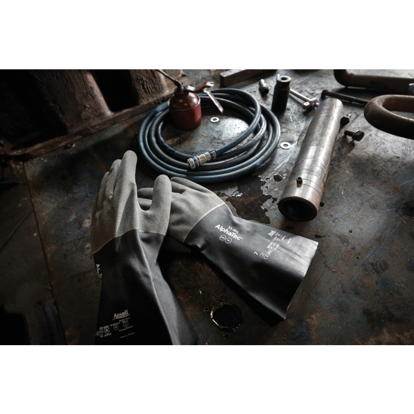ANSELL 53-001 Alphatec Chemical Resistant Gloves, Black/Grey, Nitrile, Size 8