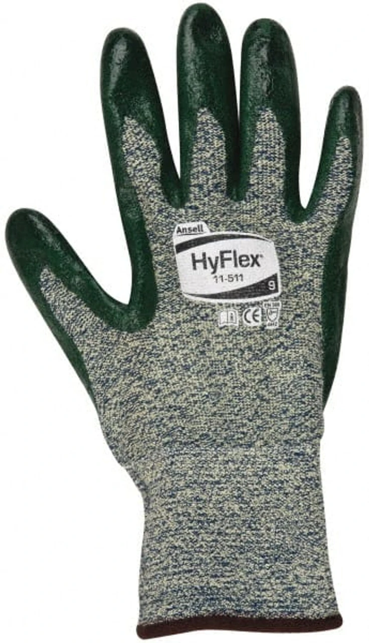 Ansell Size L (9), ANSI Cut Lvl 4, Abrasion Lvl 3, Nitrile Coated Cut Resistant Gloves 12″ Long, Palm & Fingers Coated, Kevlar Lining, Knit Wrist, Green, Paired