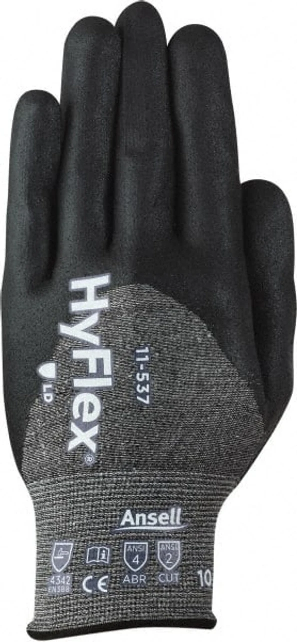 Ansell Size S (7), ANSI Cut Lvl 2, Puncture Lvl 4, Abrasion Lvl 4, Silicone-Free Nitrile Coated Cut & Puncture Resistant Gloves 9″ Long, Palm, Fingers & Knuckles Coated, Knit Wrist, Black, Paired