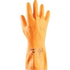 ANSELL 87-370 VersaTouch Chemical Resistant Gloves, Orange, Latex, Cotton Flocked Liner, Size 8.5