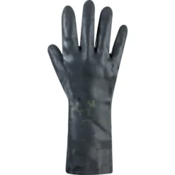 ANSELL G17K, Chemical Resistant Gloves, Black, Latex, Cotton Flocked Liner, Size 6.5